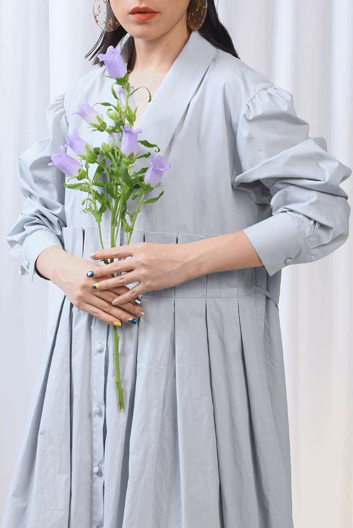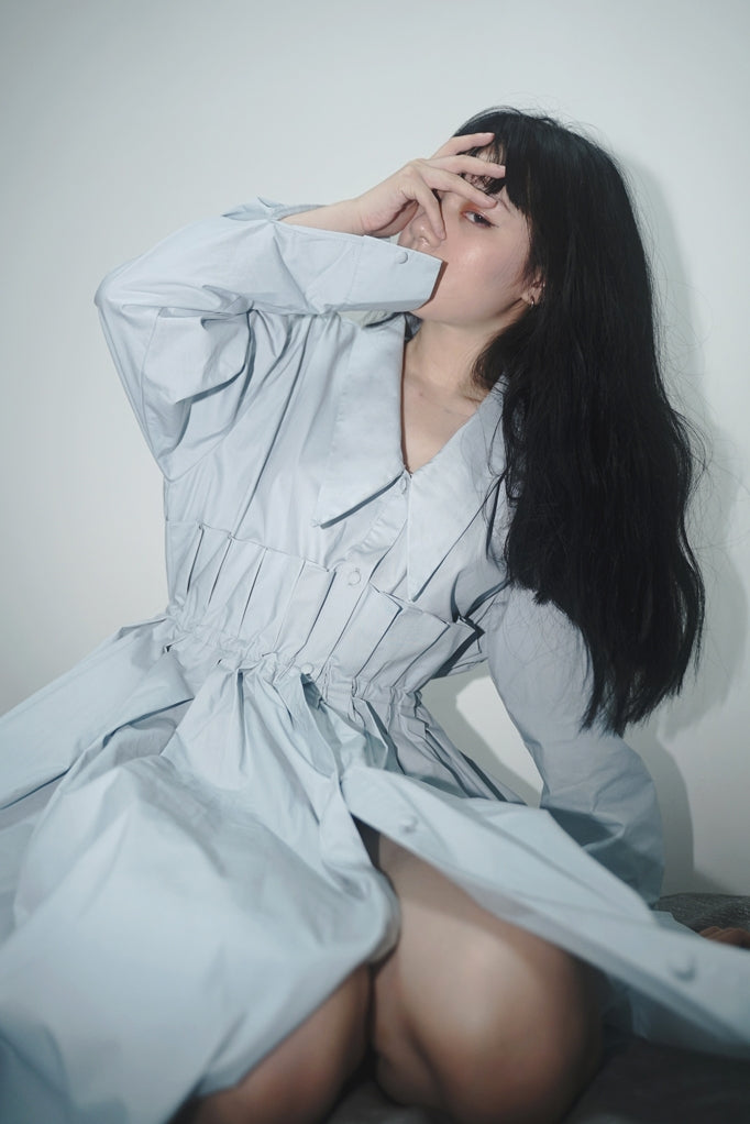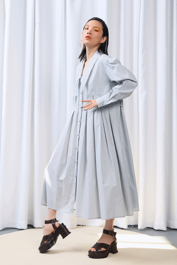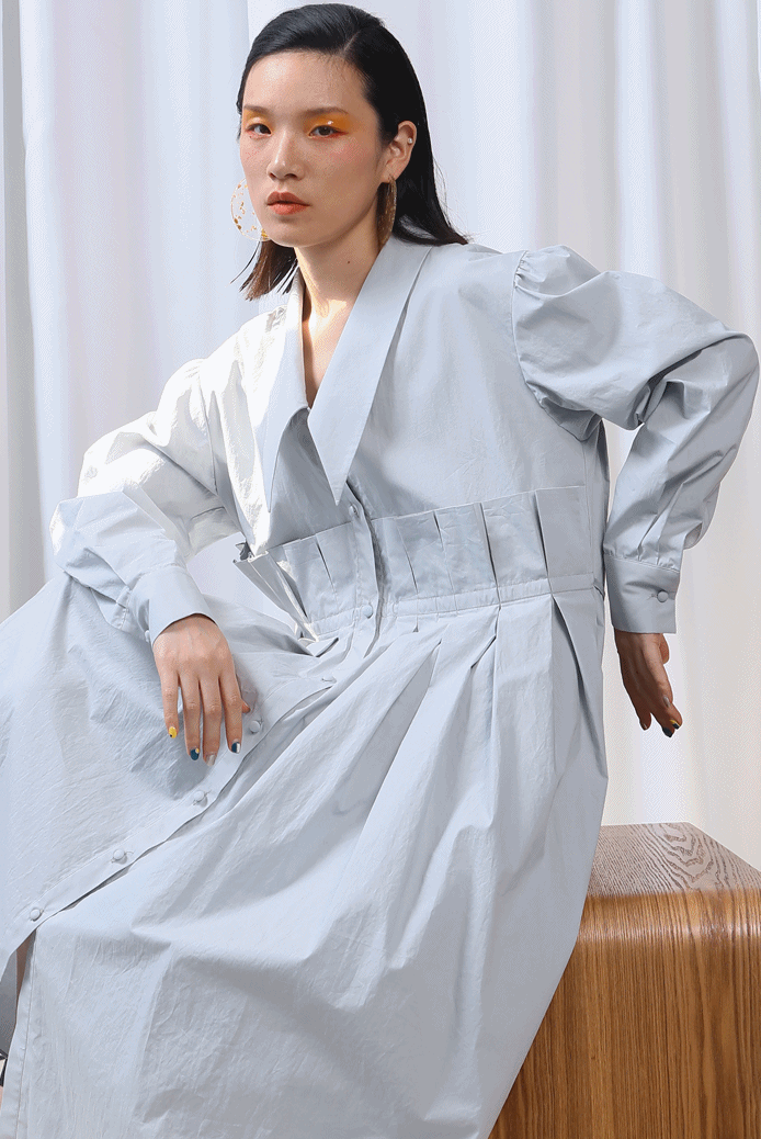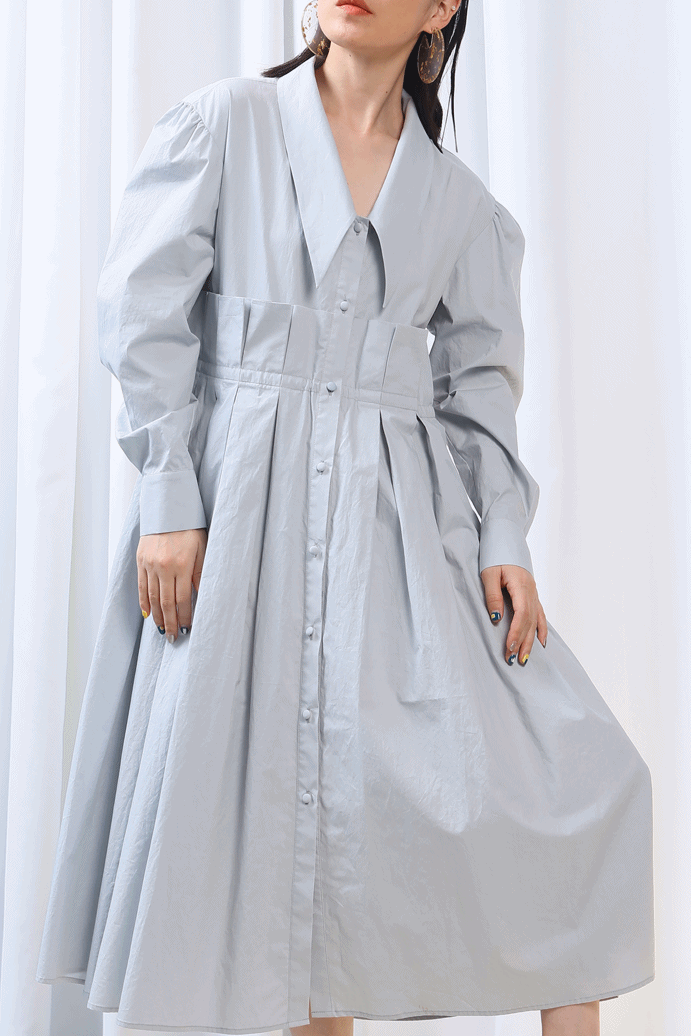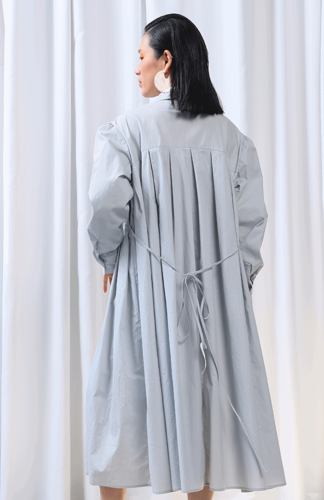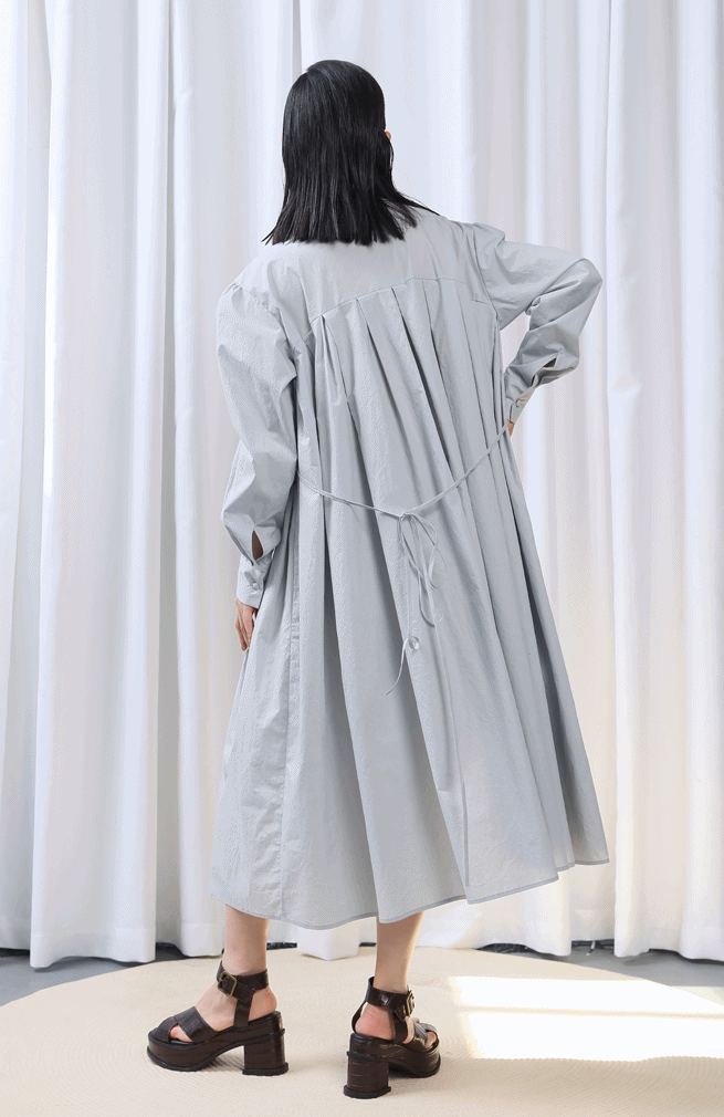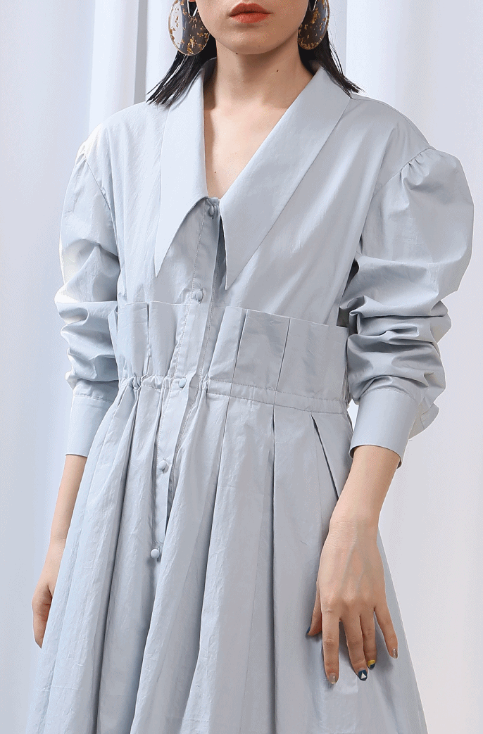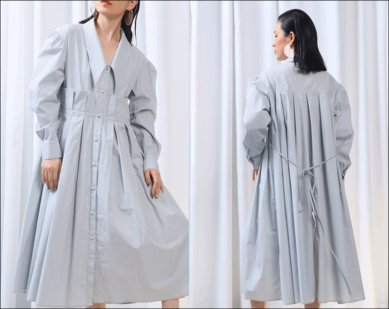 Fresh Cotton Tie Belt Waist Large Loose Pleated Shirt Dress Ruffles Poplin