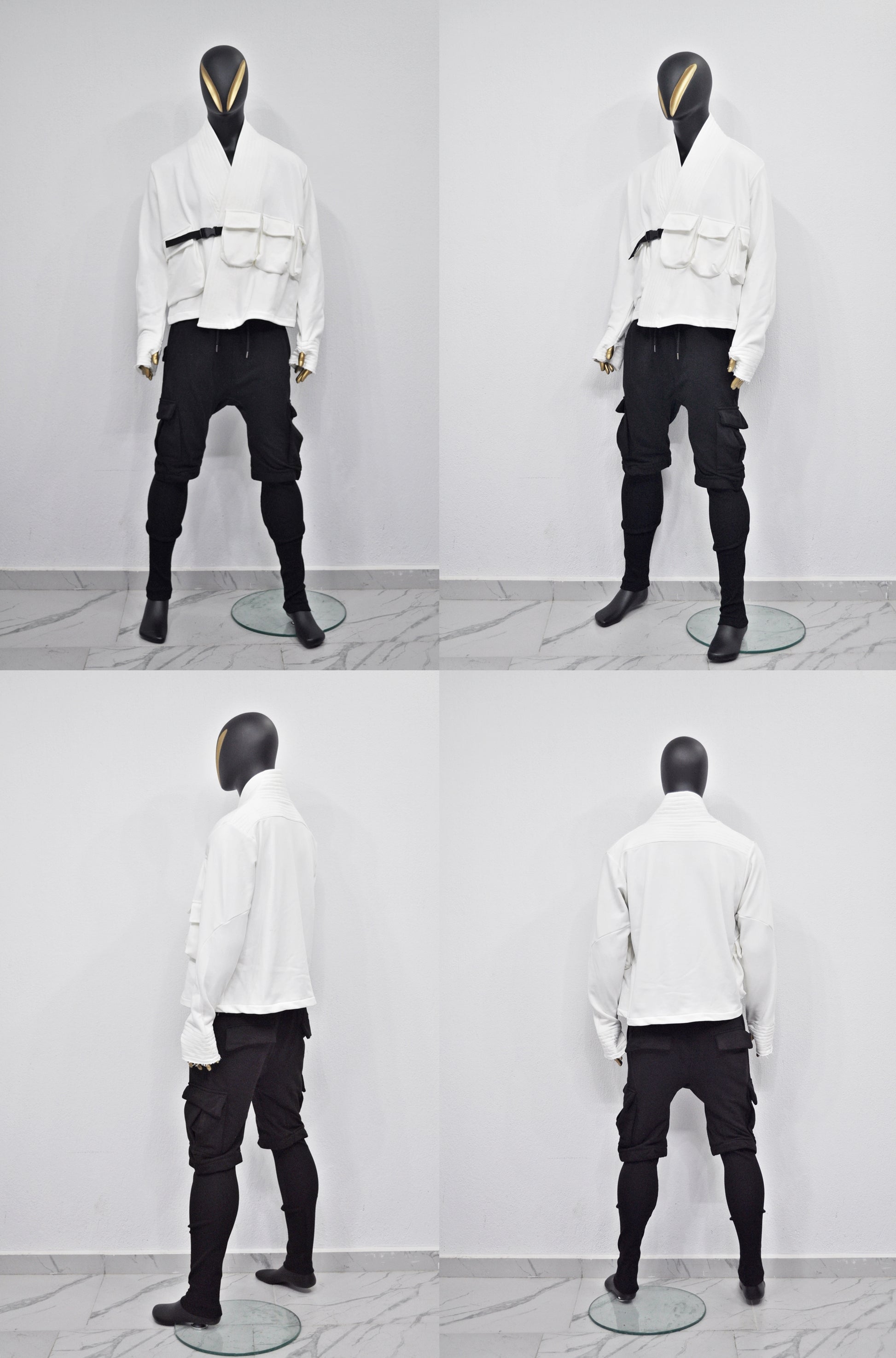XS-8XL Reveresed Jacket Distressed Oversize, Kimono Look, Tie-up, Ninja Assassin Jacket,Steampunk Gothic-Post Apocalyptic Dystopian