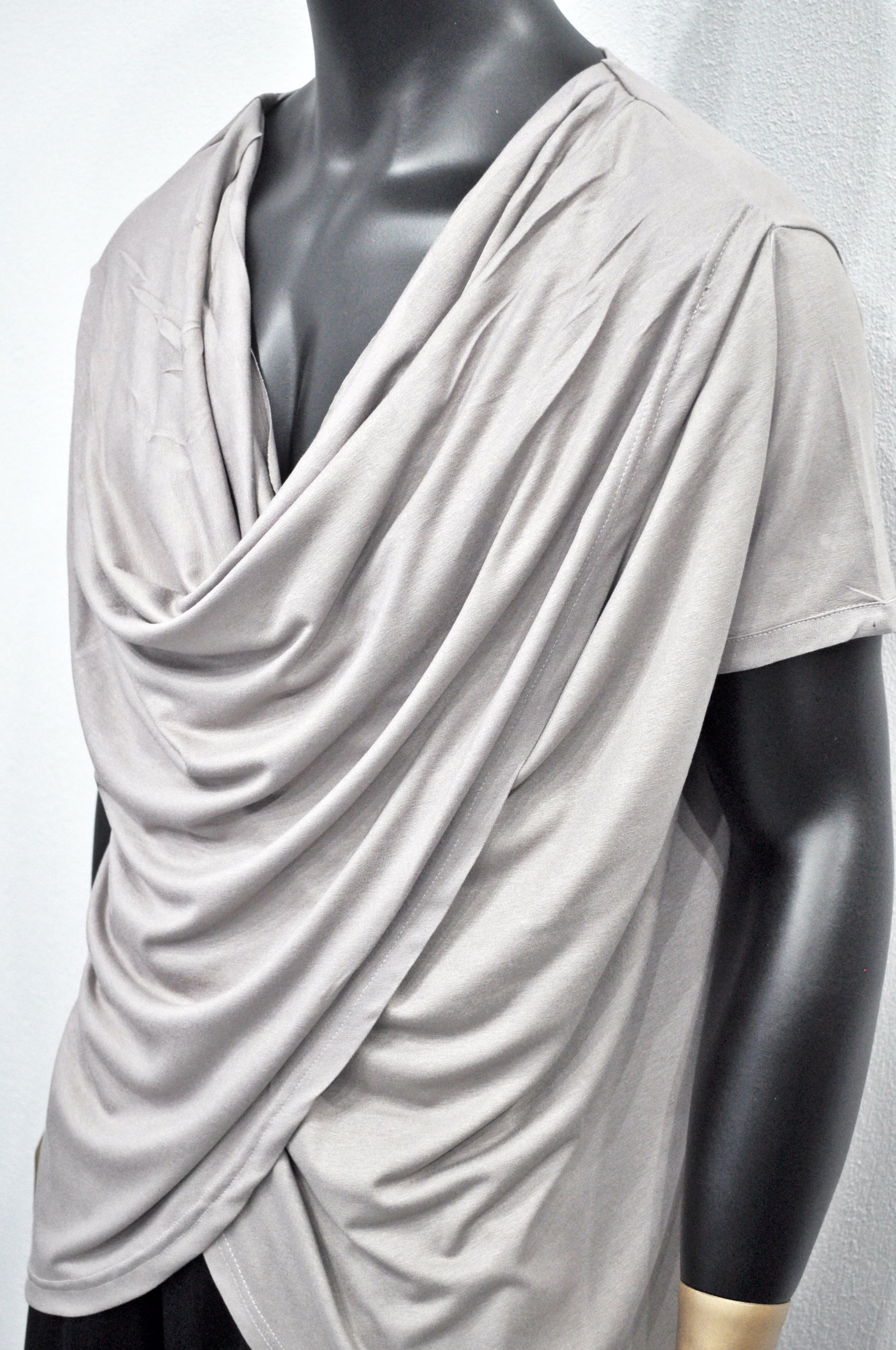 Tags: draped shirt men, avant garde top, asymmetrical shirt, streetwear fashion, cowl neck t-shirt, unisex fashion, gray modal shirt, edgy clothing, art fashion, alternative clothing