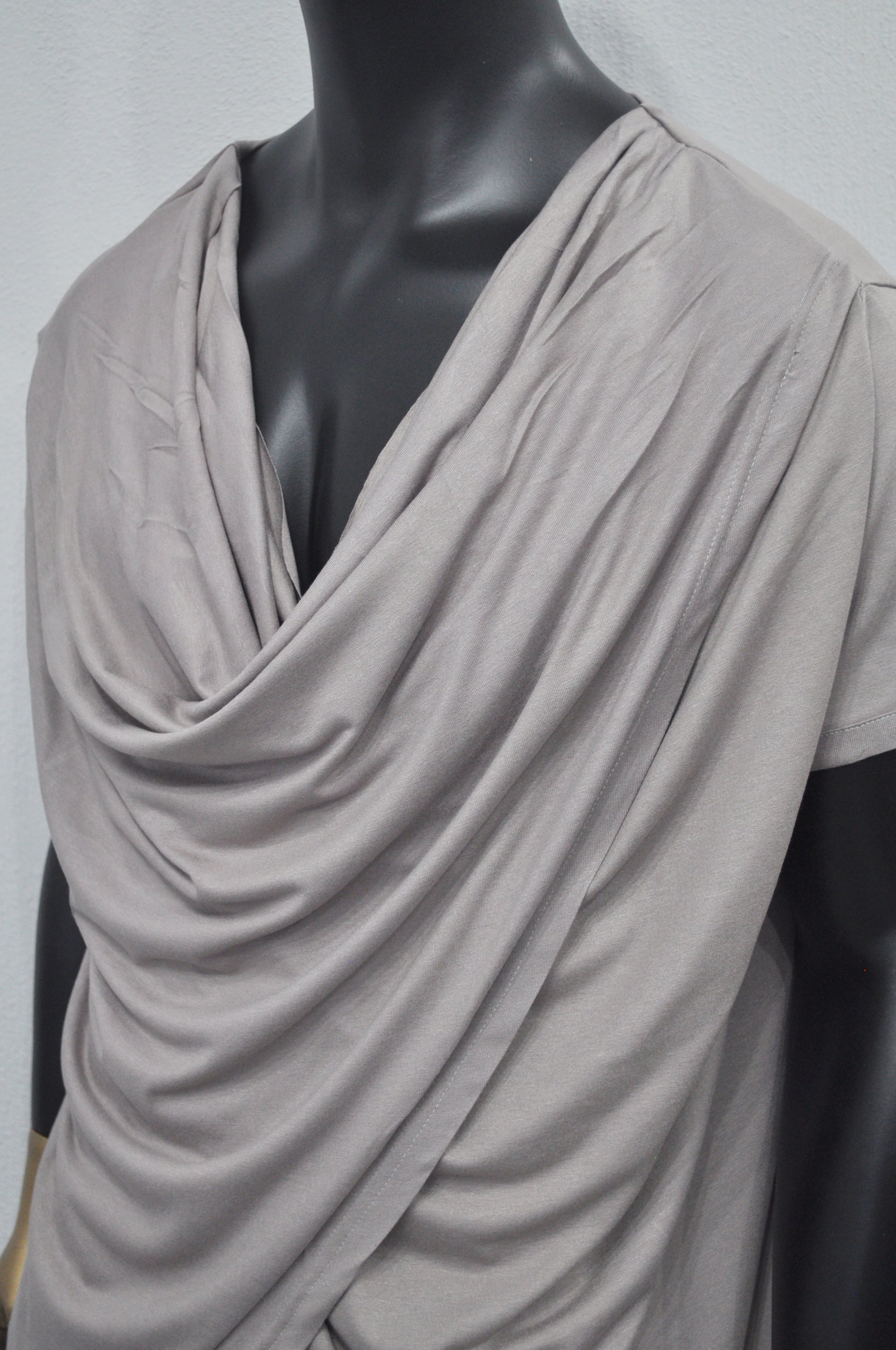 Style: Asymmetrical drape, cowl neck
