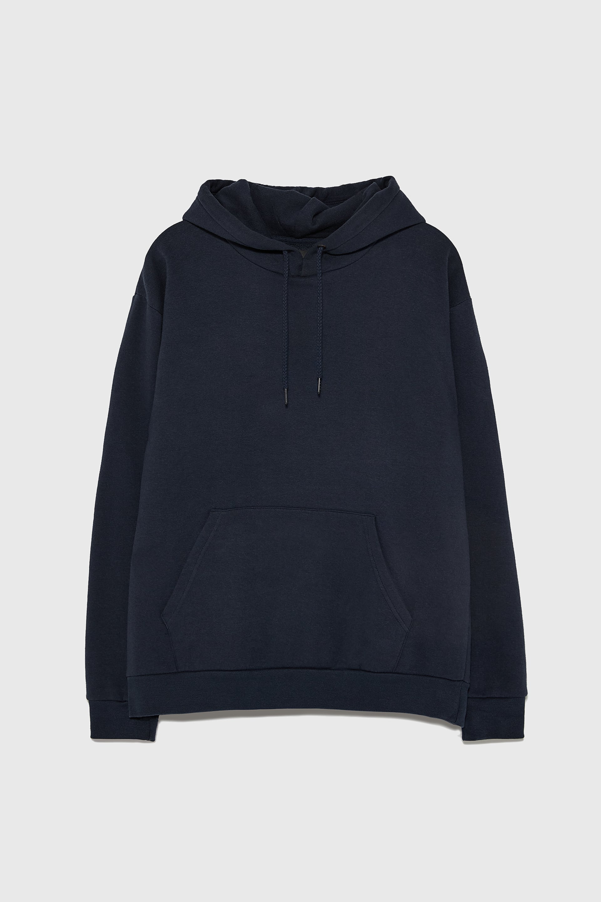 Long sleeve cotton hoodie featuring a front pouch pocket, adjustable drawstrings on the hood and ribbed trims.