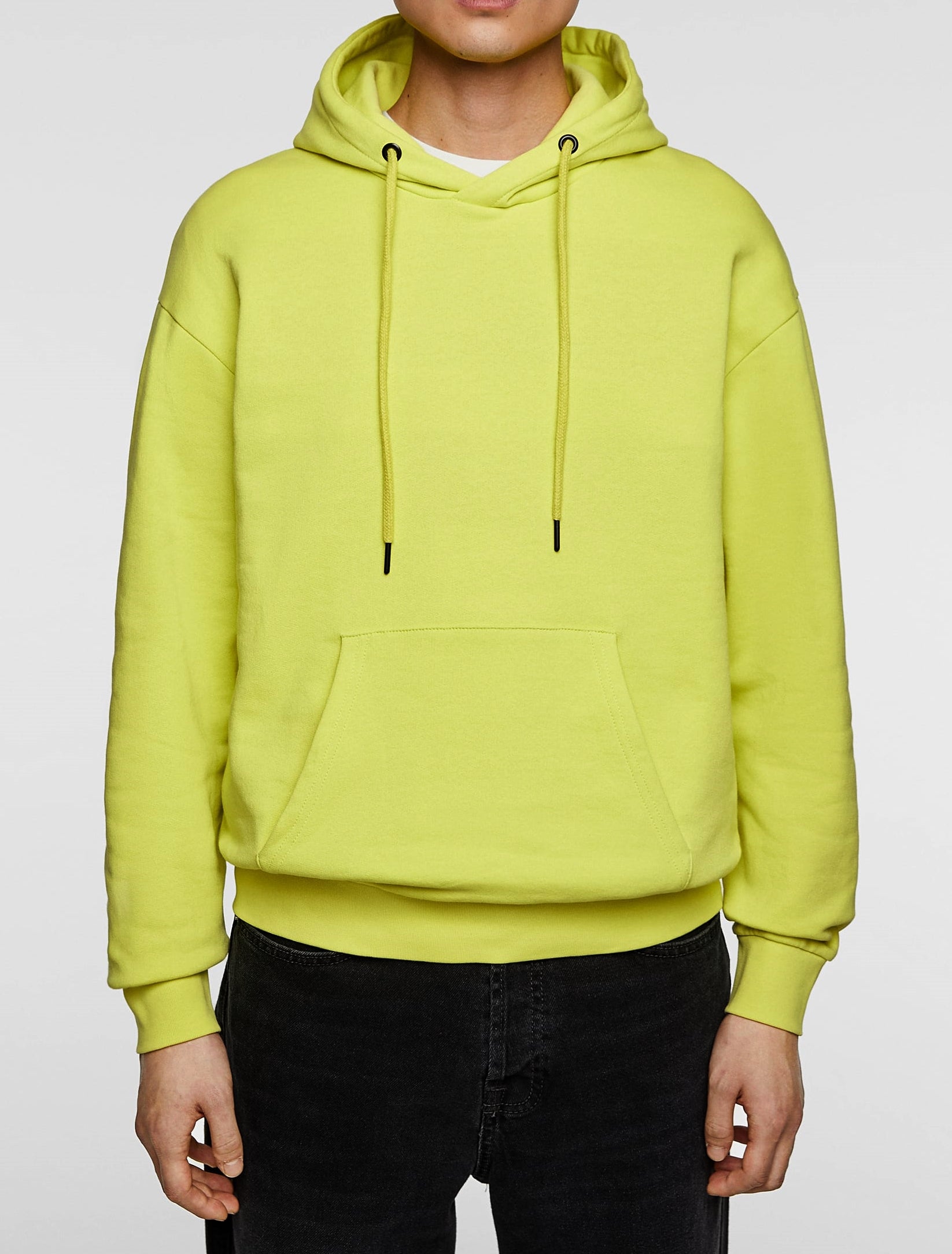 Neon Yellow Streetwear Men Long Sleeve Patch Outpocket Hoodie / Gym Oversized