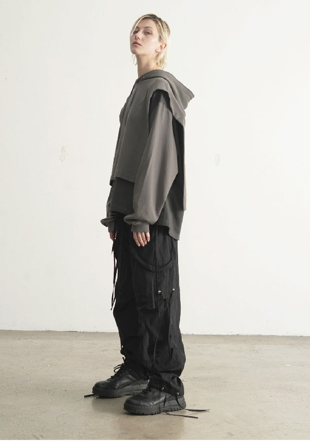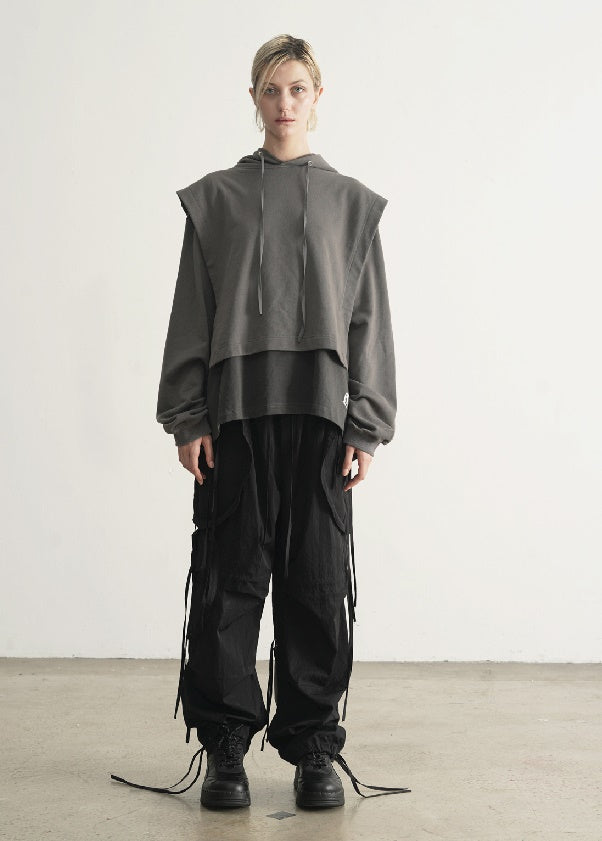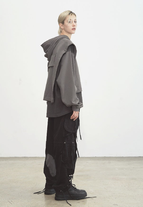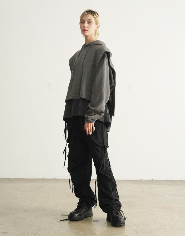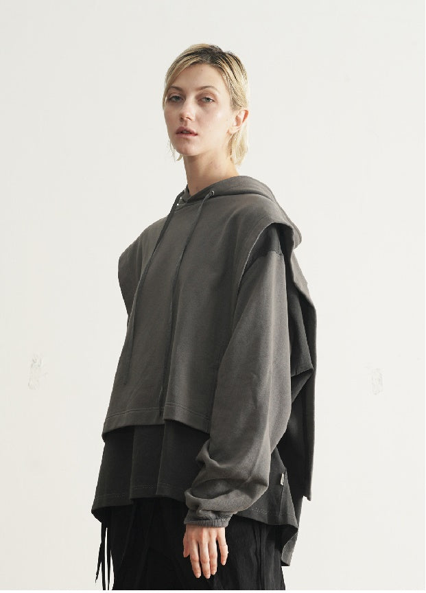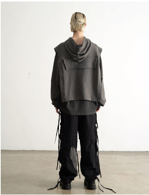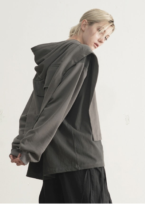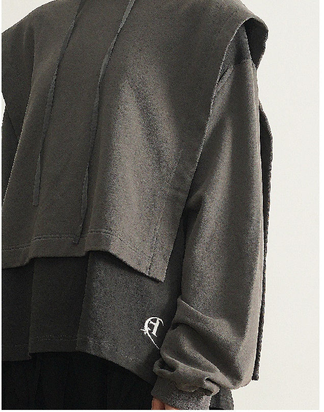 Dirty Dyed Two Piece Look - Cloak Style Stitching Sweater