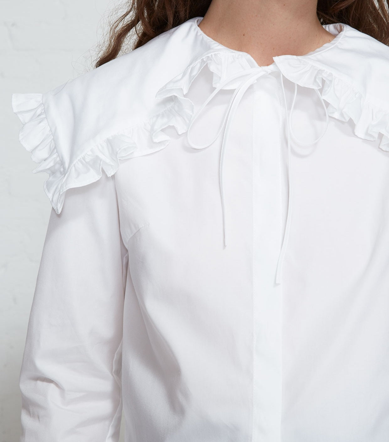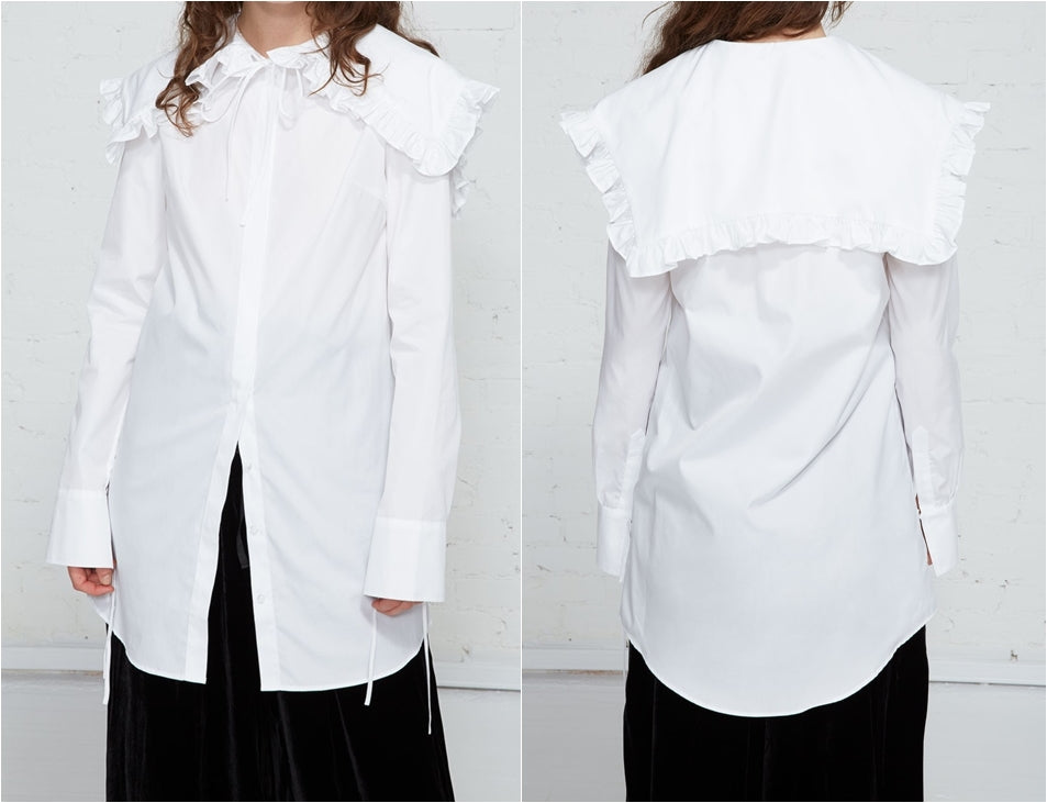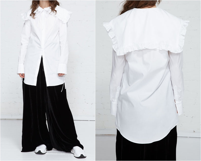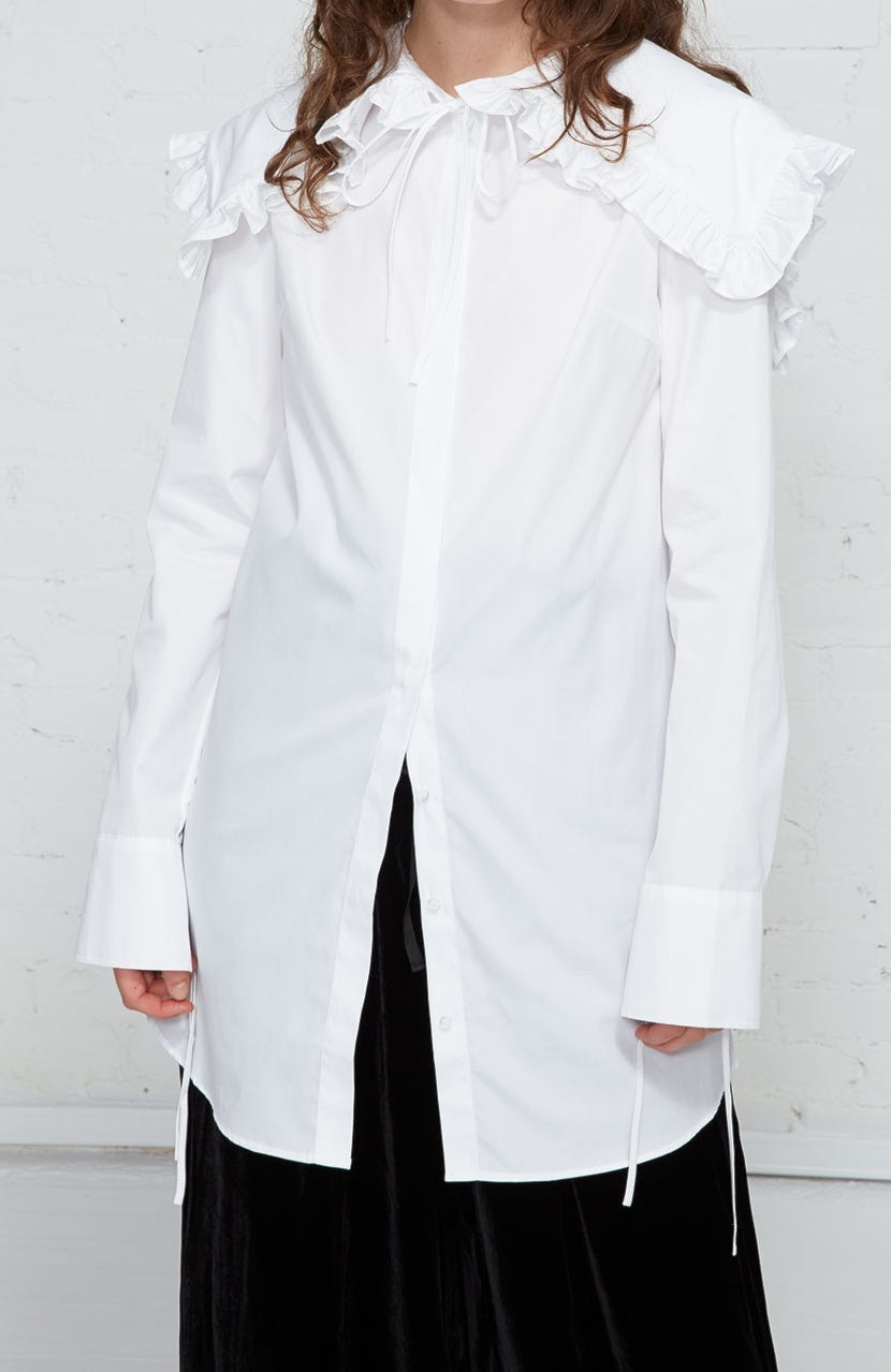 Mediavel Poplin Shirt / Dramatic Ruffled Cape Collar