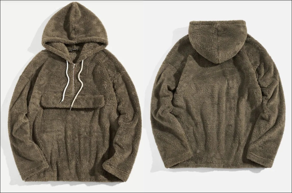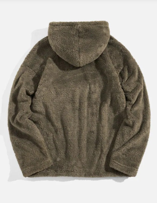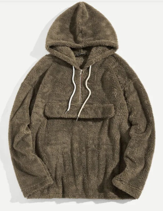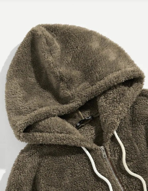 Men Zip Front Drawstring Hoodie Teddy Anorak Sherpa Jacket