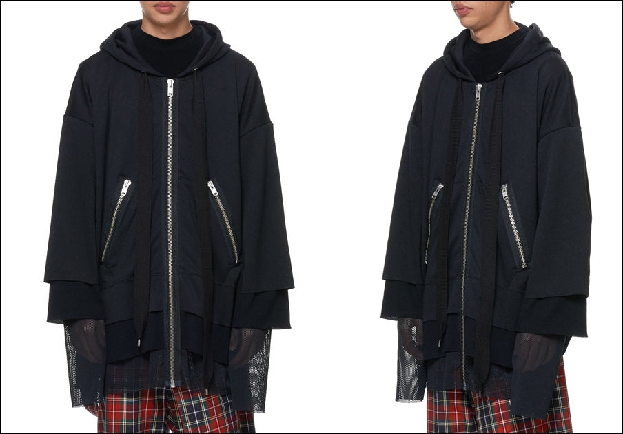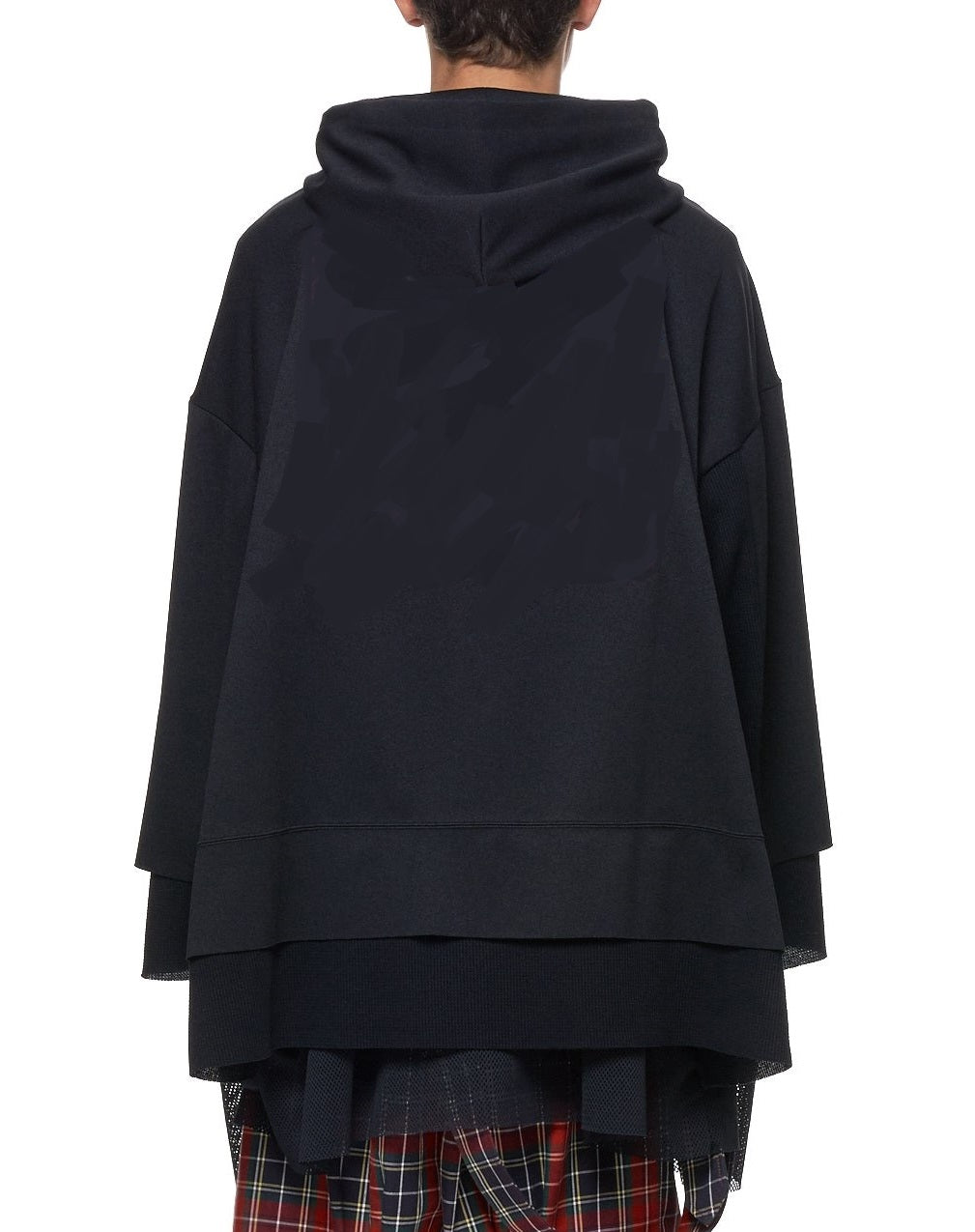 Mesh Hoodie Sweater in Black / Adjustable Hood Layer Over Mesh Triple