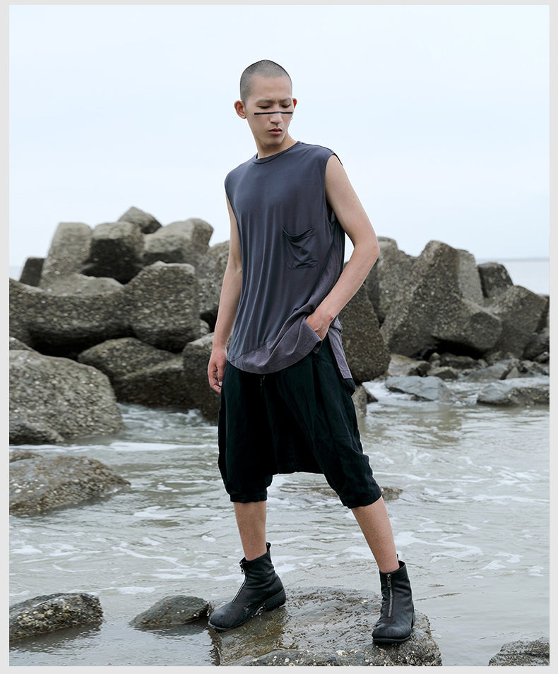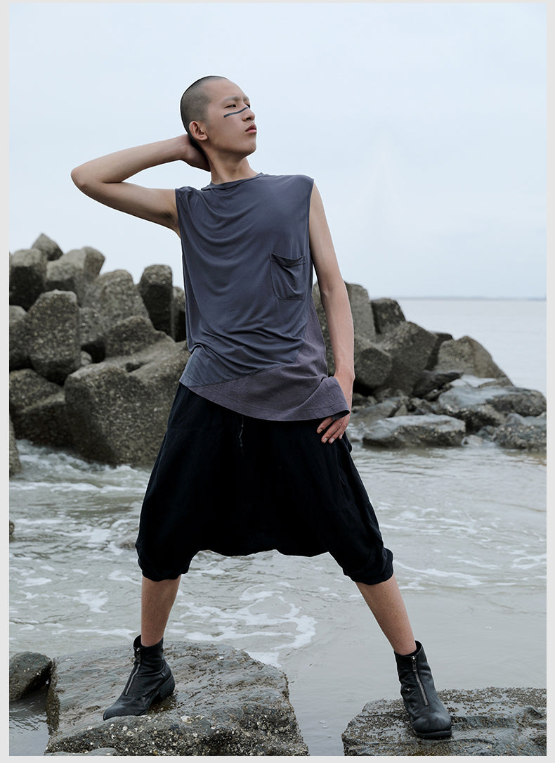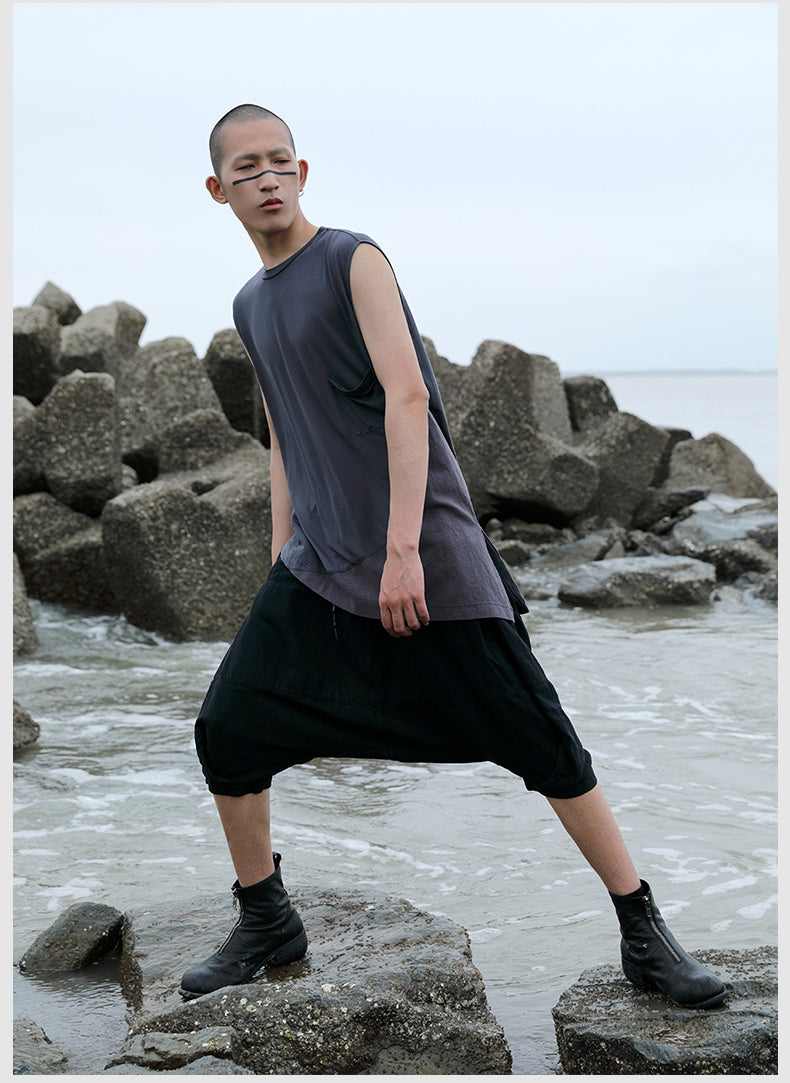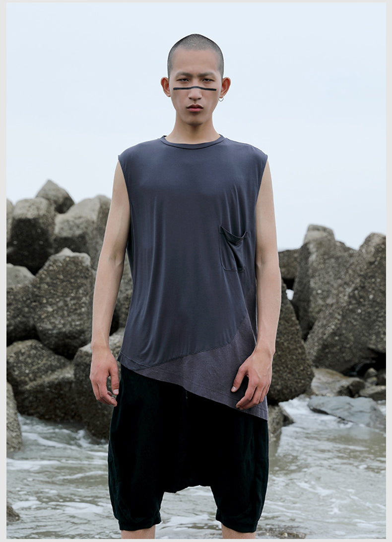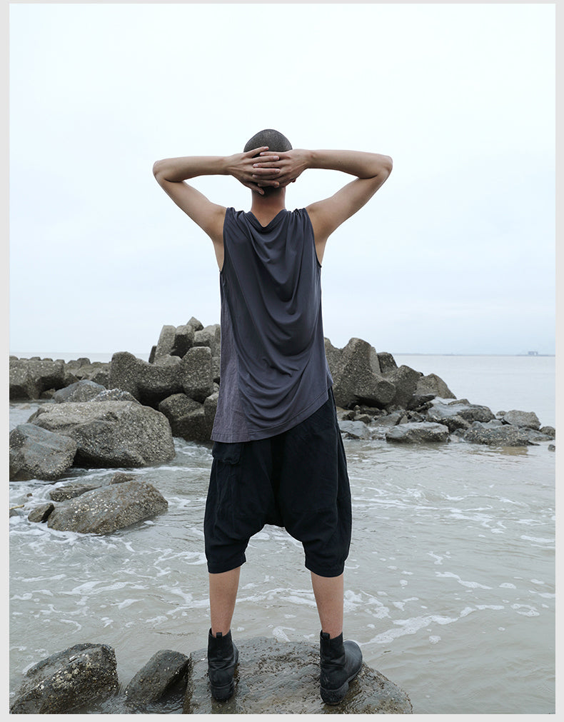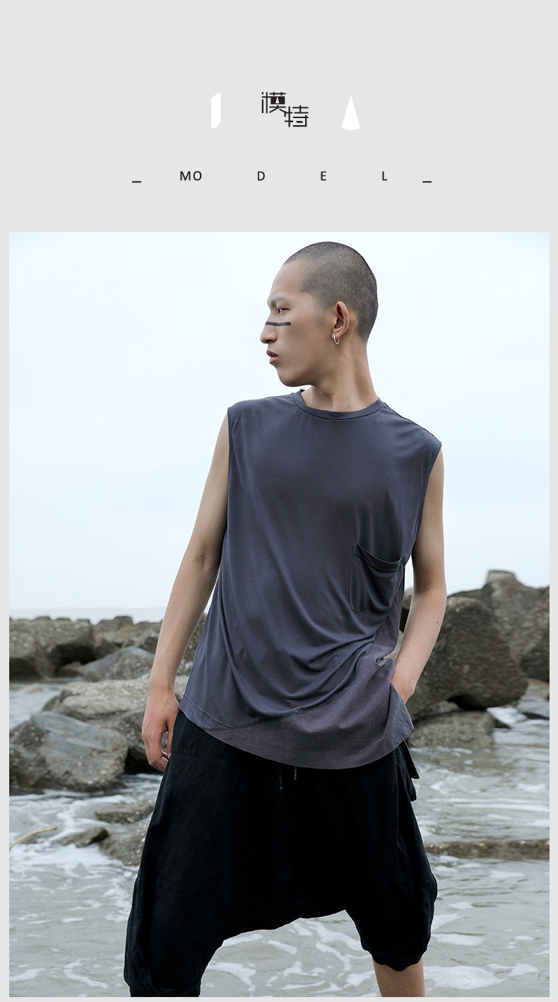 Original Design Men's Sleeveless T-shirt Top Loose Shoulder Vest
