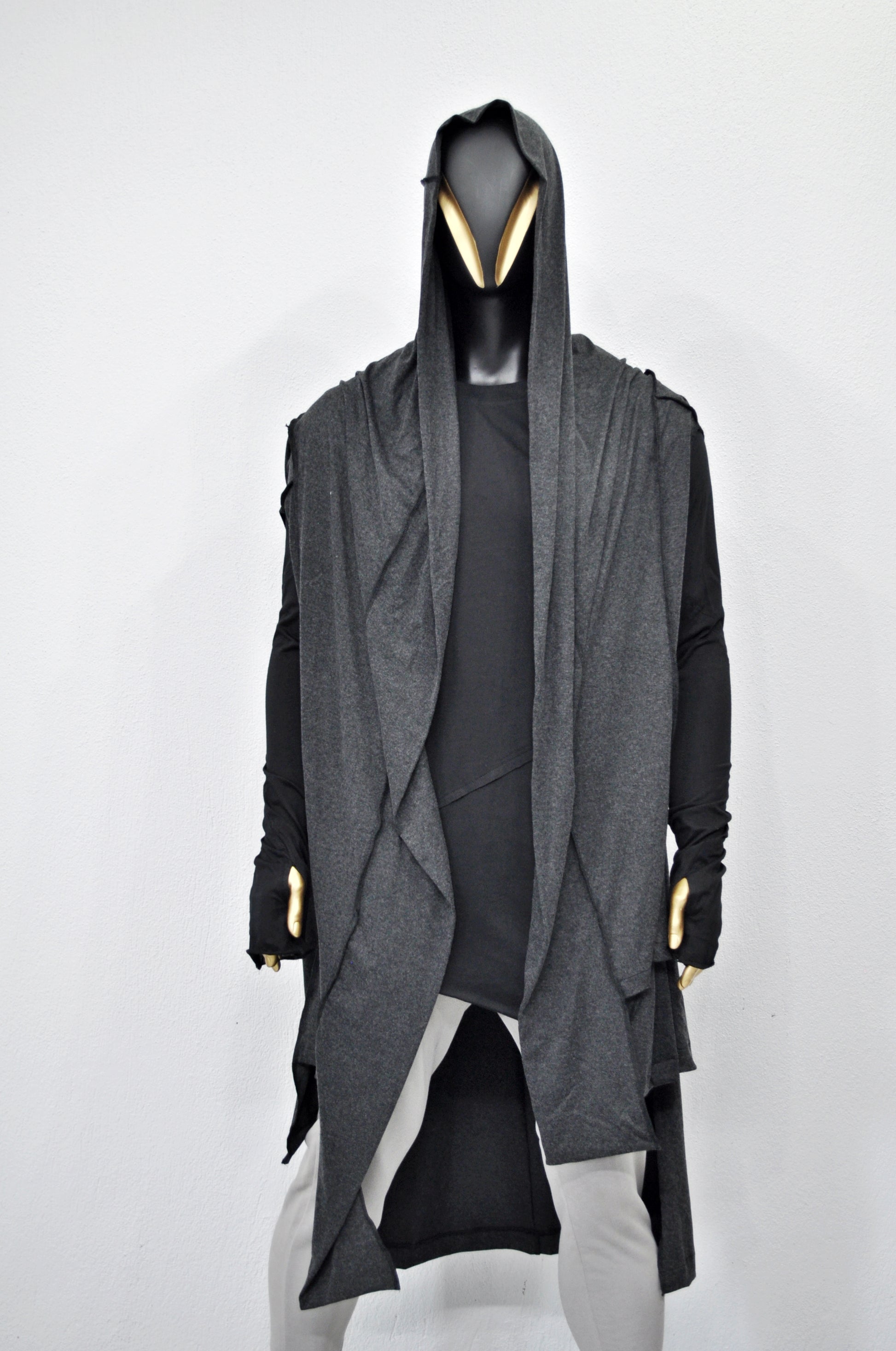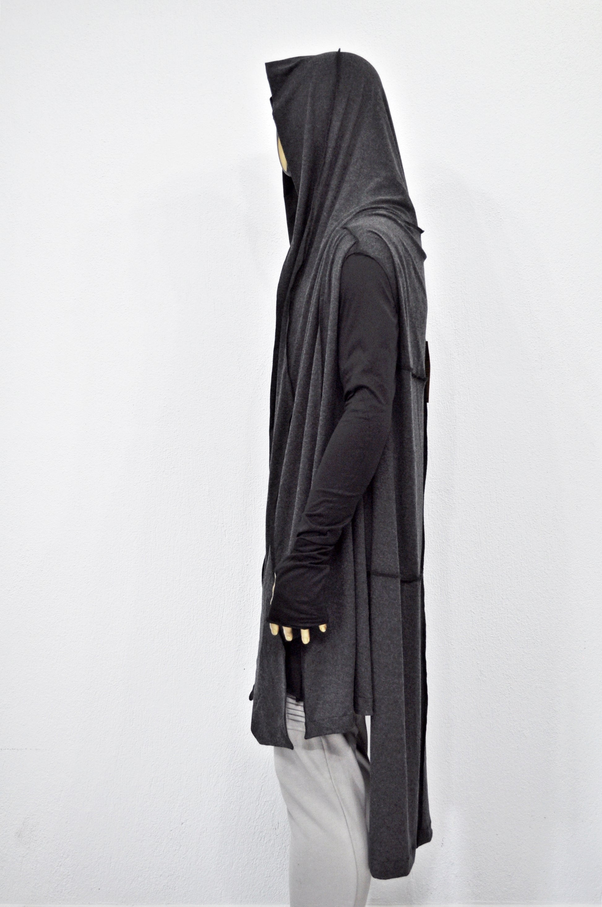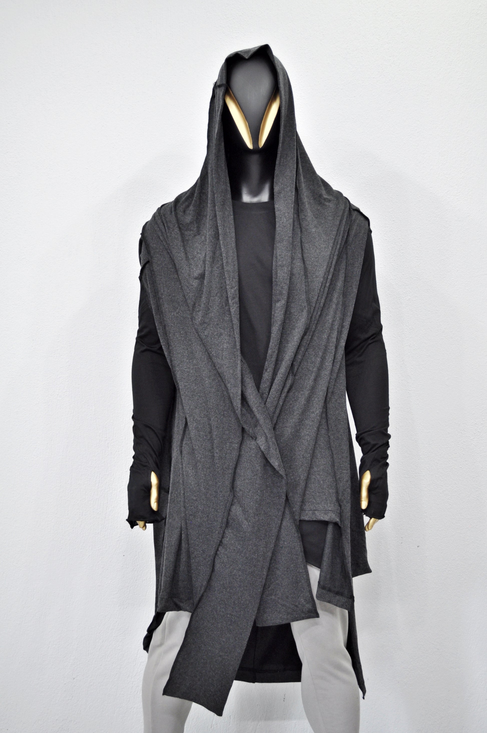 XS - 8XL Long Poncho Cardigan Men & Women, Japanese Oversized Sleeveless Kimono Shawl Shirt,Streetwear Wrap Top,Asymmetrical Vest Hooded Cape Coat, Avant Garde Long Sleeve Shirt,Futuristic Clothing-BB0154
