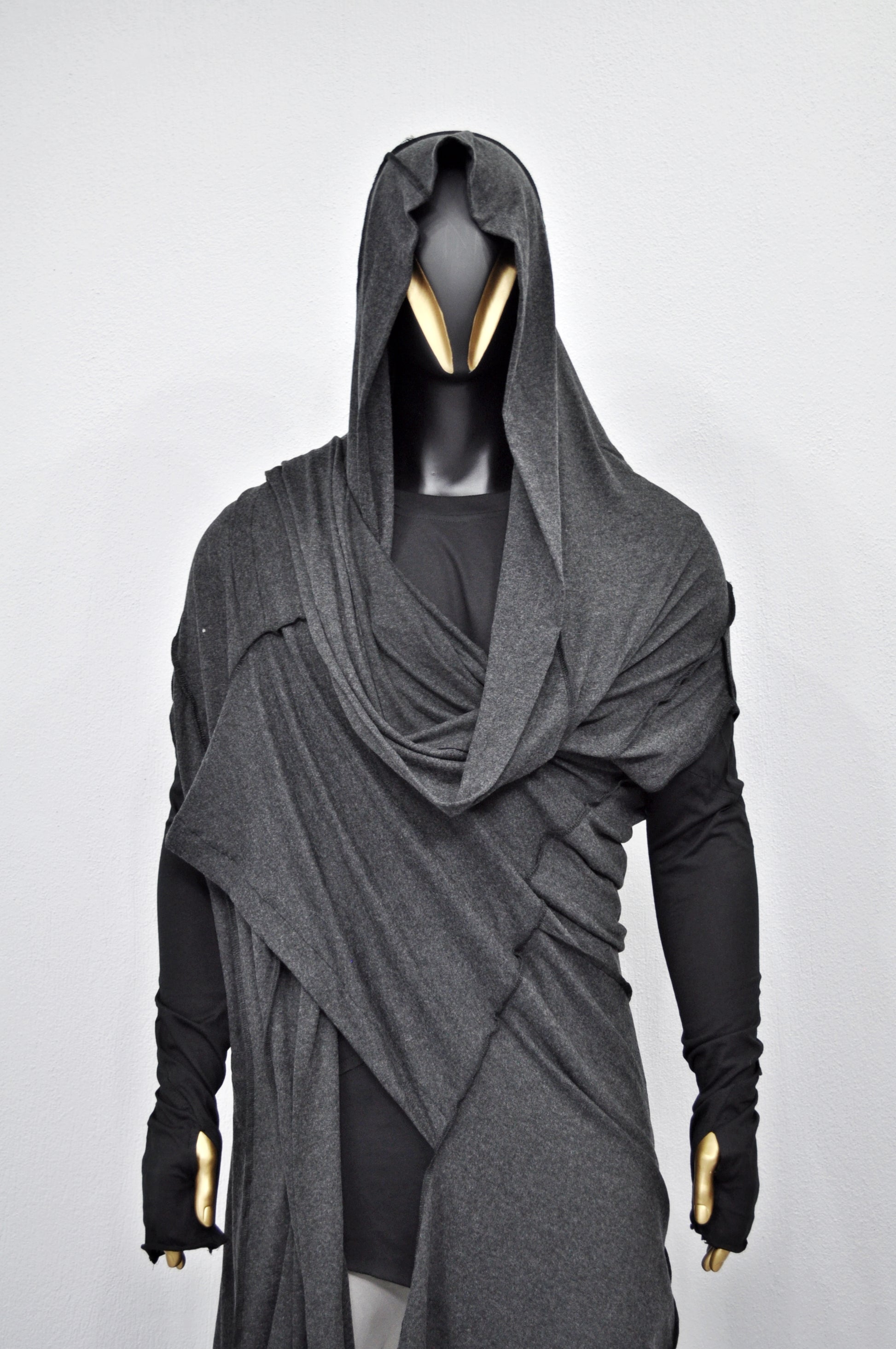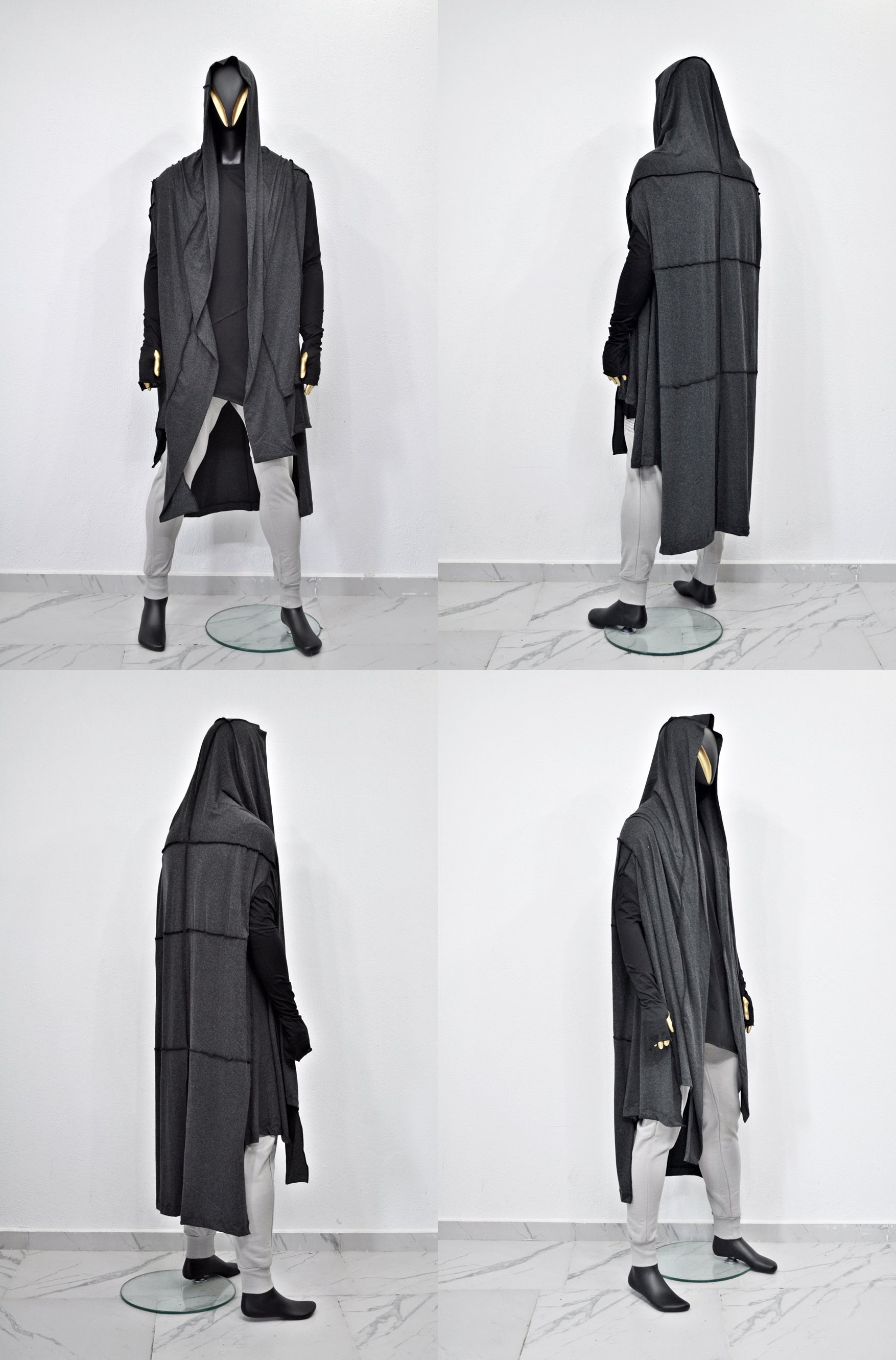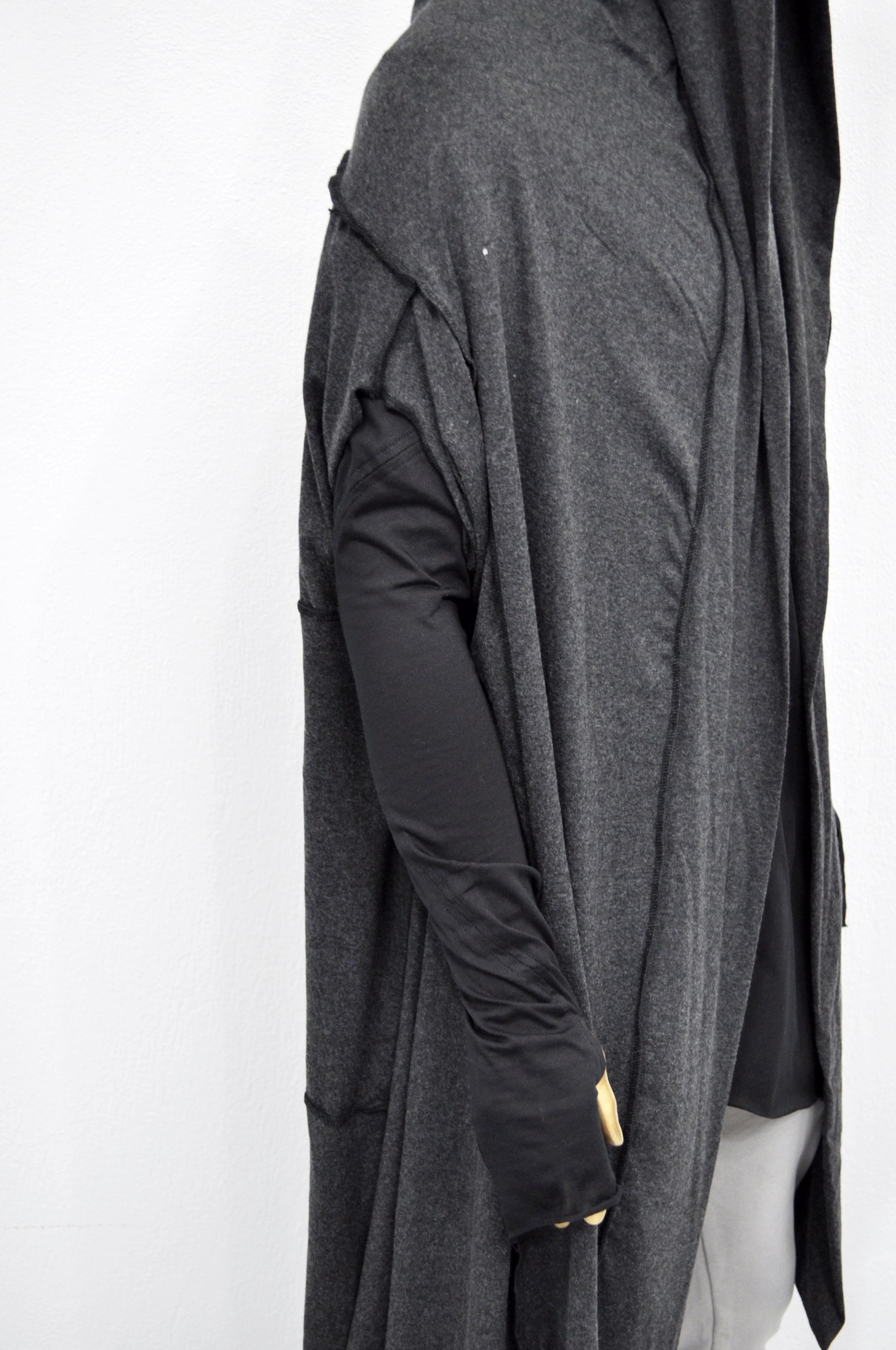 XS - 8XL Long Poncho Cardigan Men & Women, Japanese Oversized Sleeveless Kimono Shawl Shirt,Streetwear Wrap Top,Asymmetrical Vest Hooded Cape Coat, Avant Garde Long Sleeve Shirt,Futuristic Clothing-BB0154