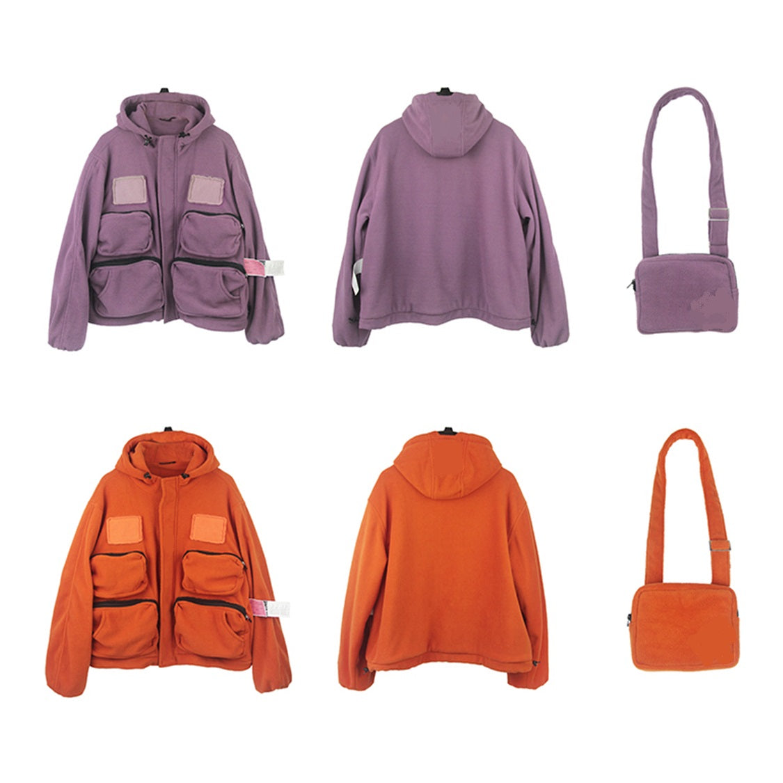 Patchwork Hooded Jackets Men Hip Hop Multi Pockets Warm Coats Casual Streetwear Outerwear