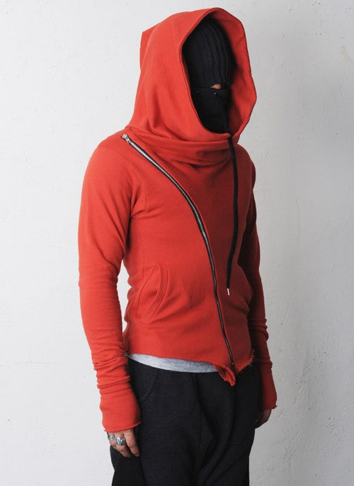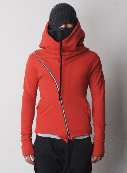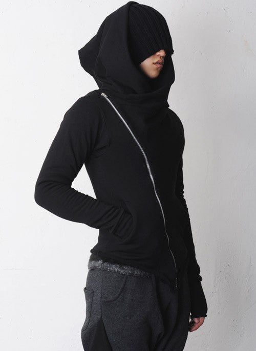 Asymmetric Zipup Hood Jacket Top T-Shirt Voth Hoodie / Fleece Hoodie