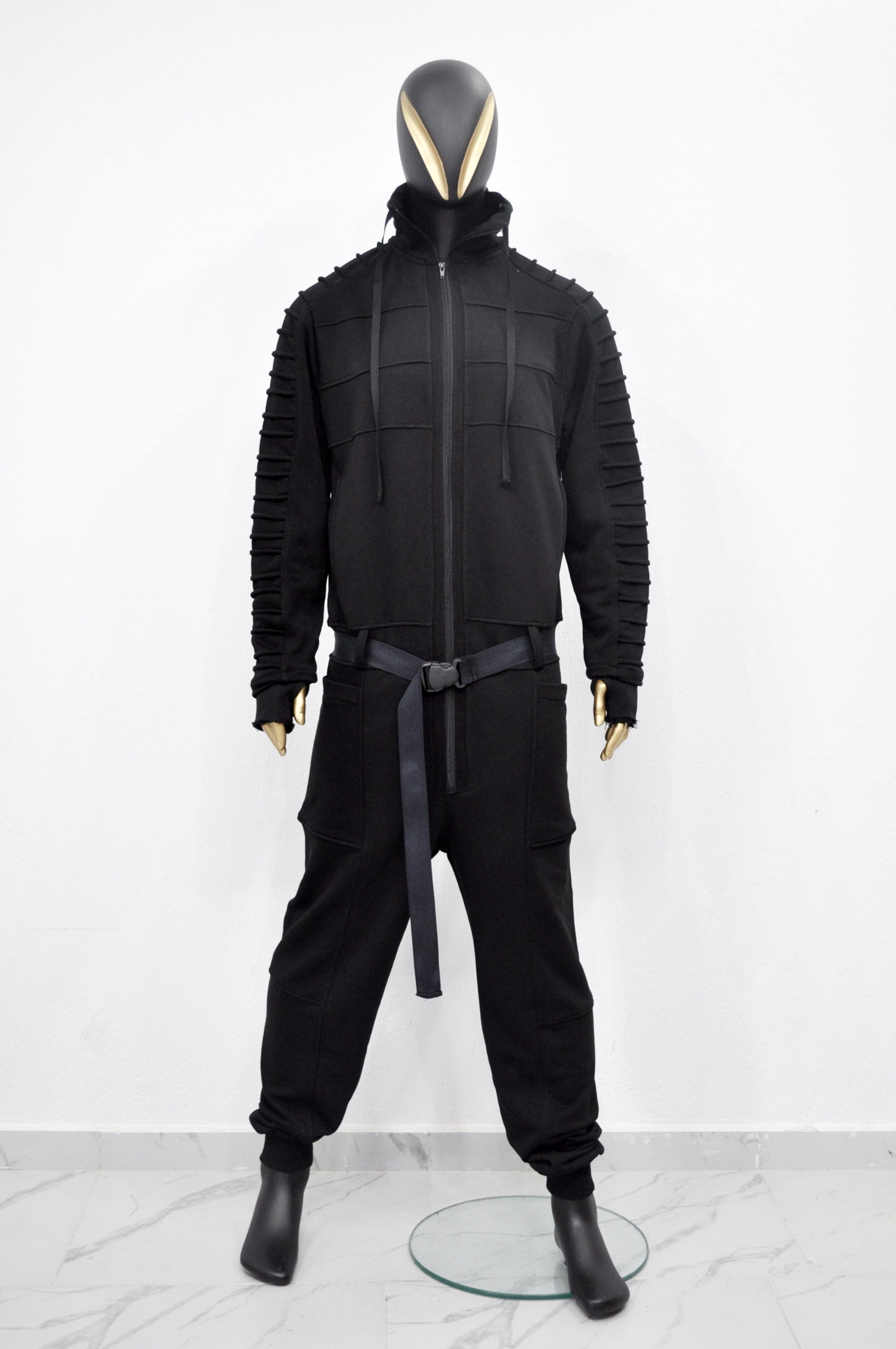 XS - 8XL Men's Black Overall Jumpsuit,Sci-fi Cosplay Flight Suit,Rave Regalo Moch,Cyberpunk / Futuristic Jacket,Gothic Hoodie/PLUS SIZE