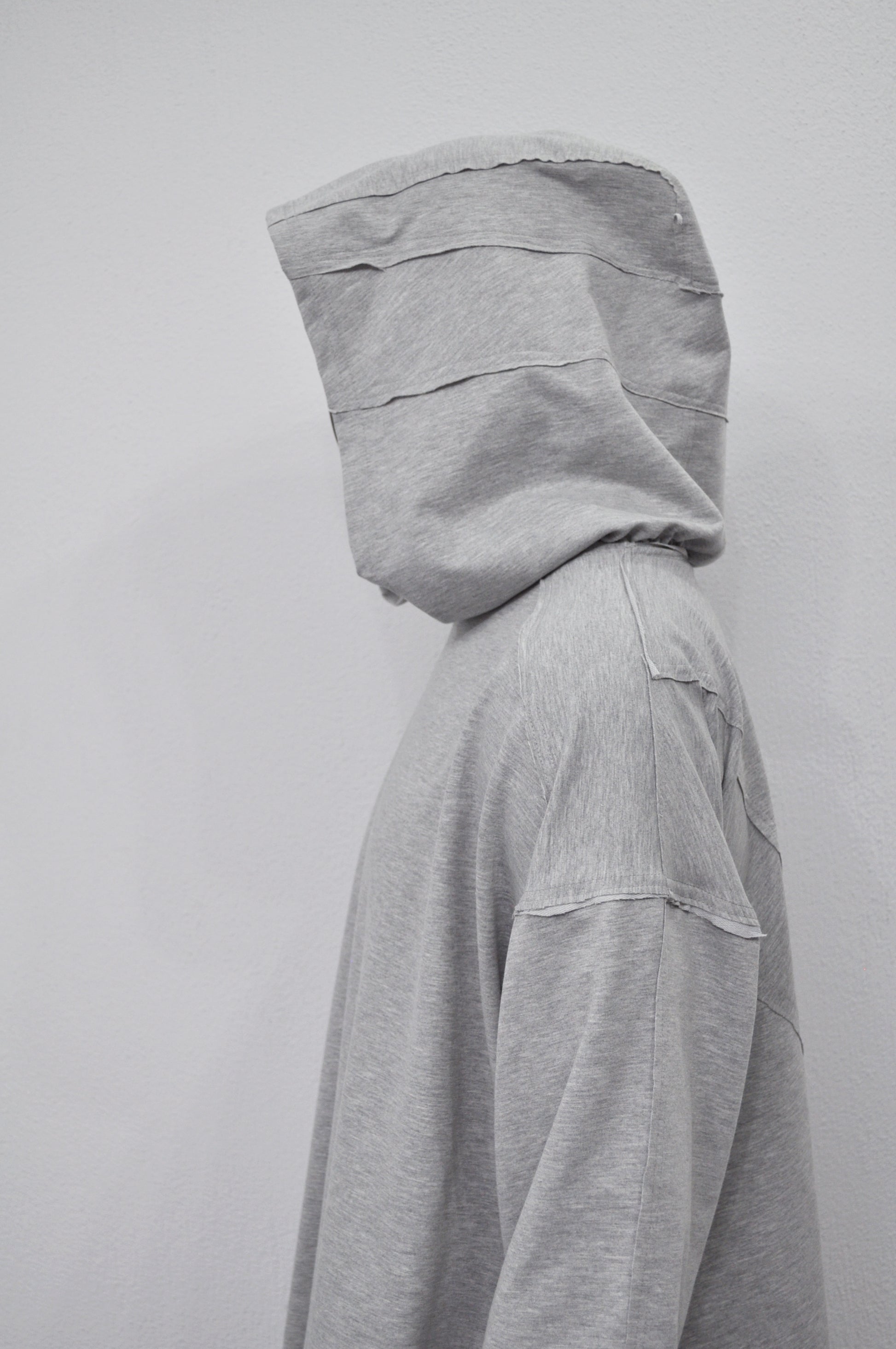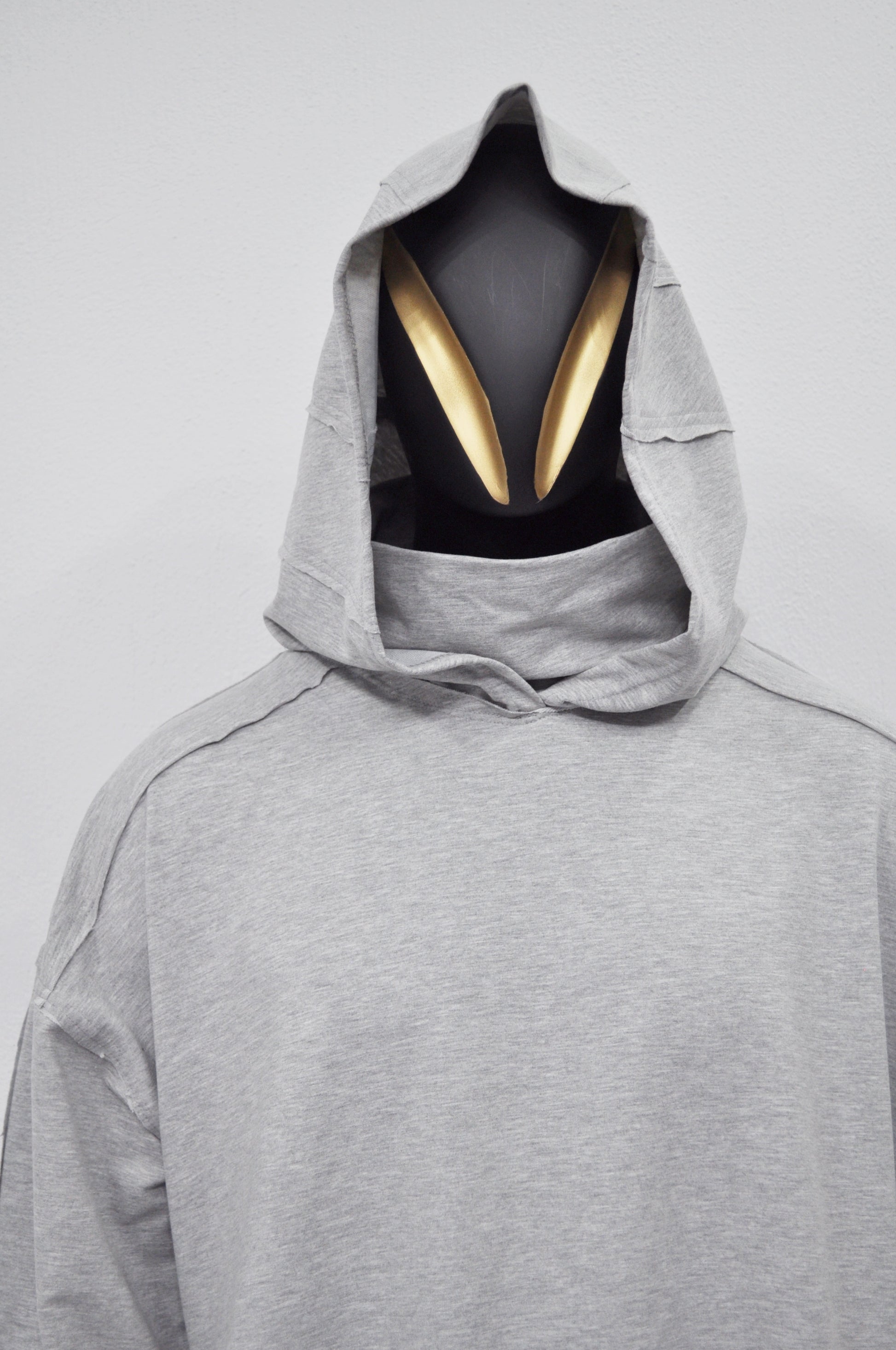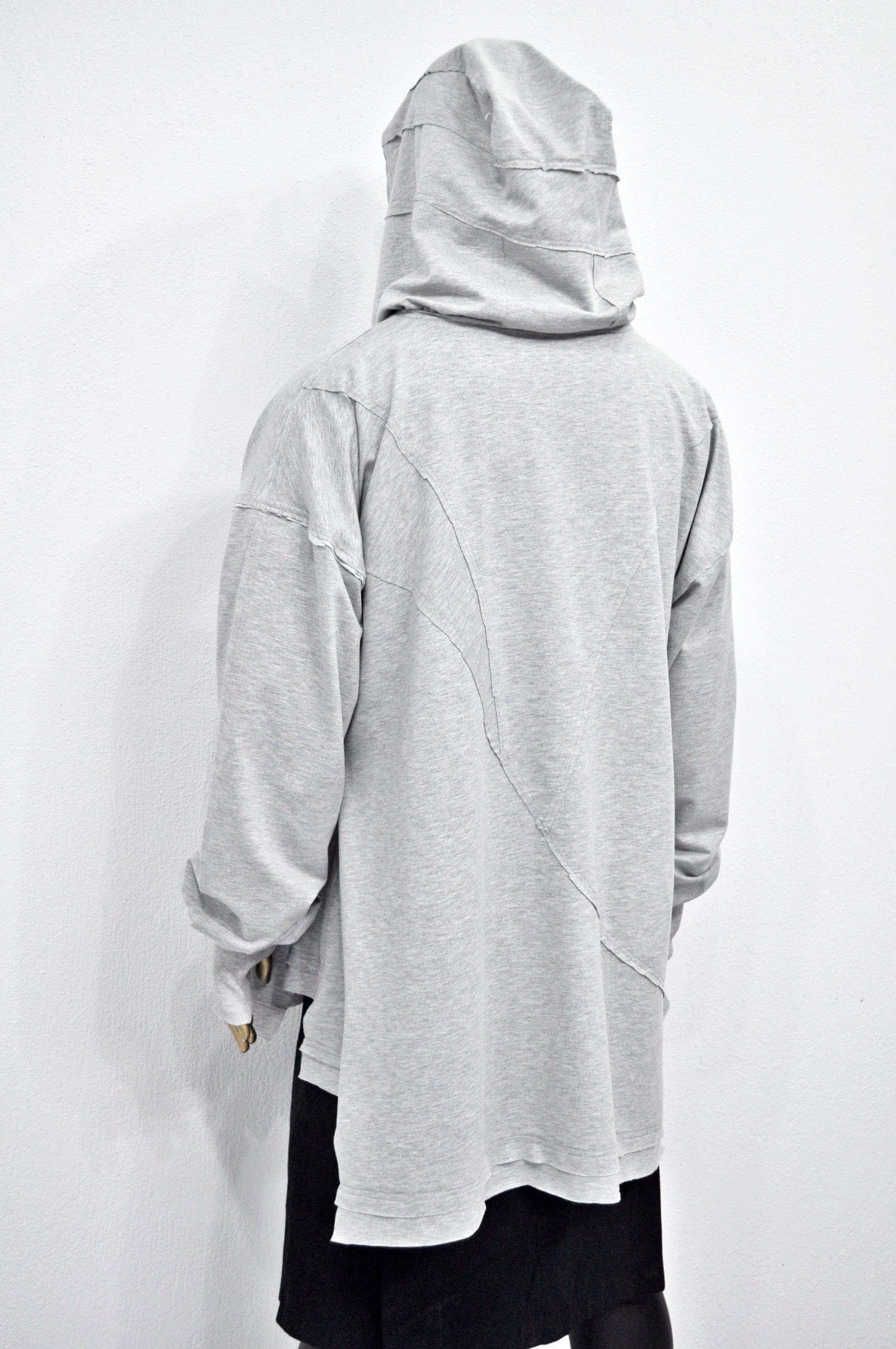 XS-8XL Men's Distressed Structured Silhouette Hooded Turtleneck Sweatshirt,Ashassin Hood Asymetrical Goth Cardigan, Cyber Long SteamPunk Cosplay, Kimono Futuristic- Post Apocalyptic Dystopian